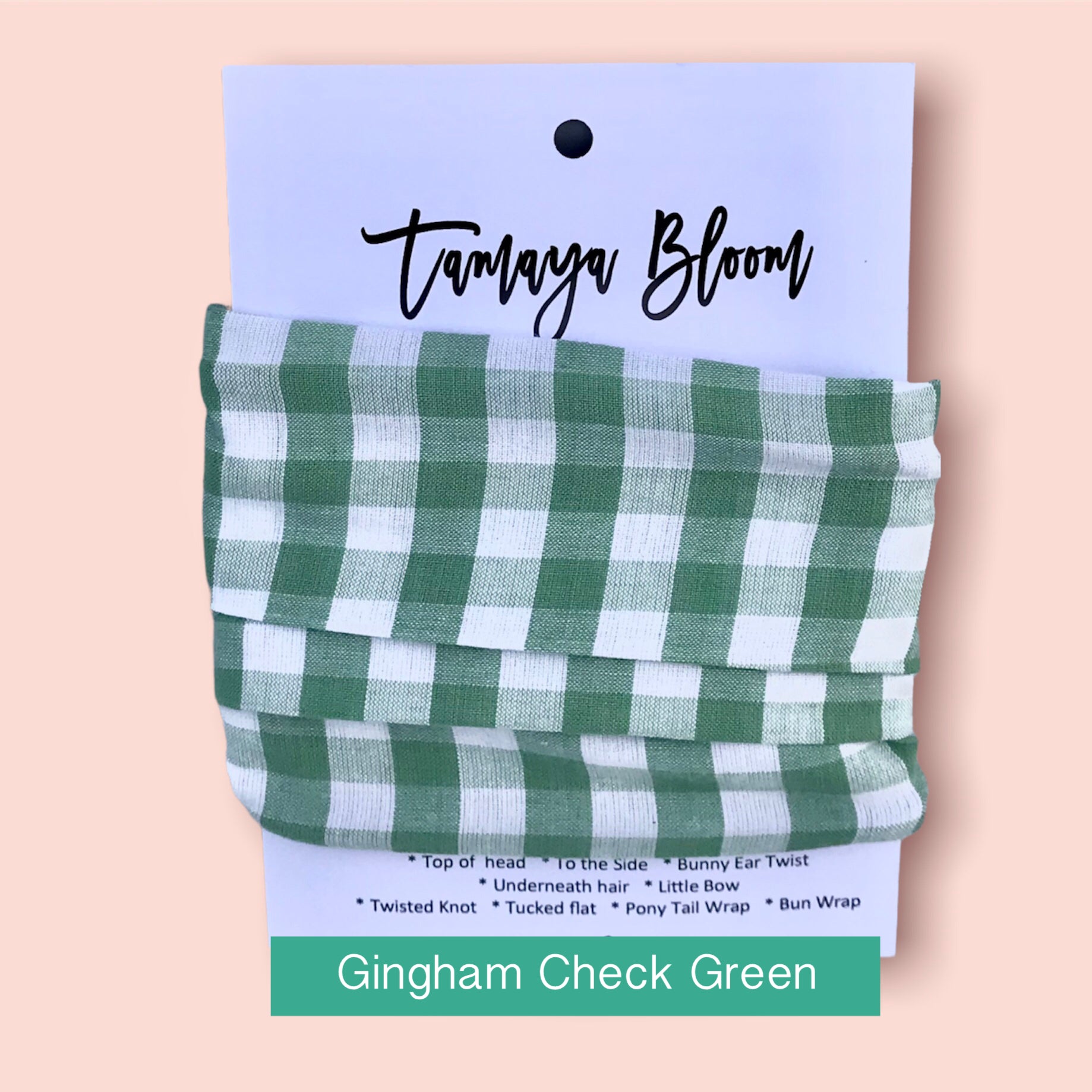 Simply wrap around your head to the desired firmness you find comfortable cross over and twist to hold in place. The ends can then be bent in to make a smaller bow, wrapped into a rose, tucked under flat or left in the bunny ear style.  You can even wrap around a ponytail or bun and finish the twist in the same way so is even more versatile.