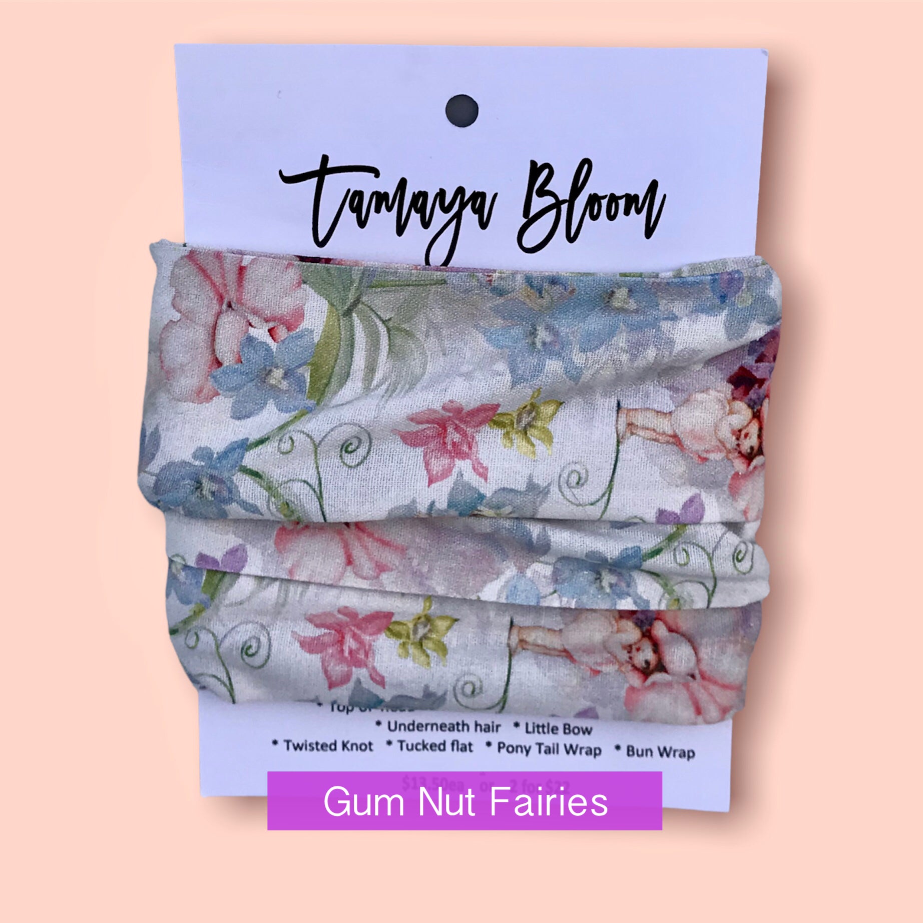 Simply wrap around your head to the desired firmness you find comfortable cross over and twist to hold in place. The ends can then be bent in to make a smaller bow, wrapped into a rose, tucked under flat or left in the bunny ear style.  You can even wrap around a ponytail or bun and finish the twist in the same way so is even more versatile.