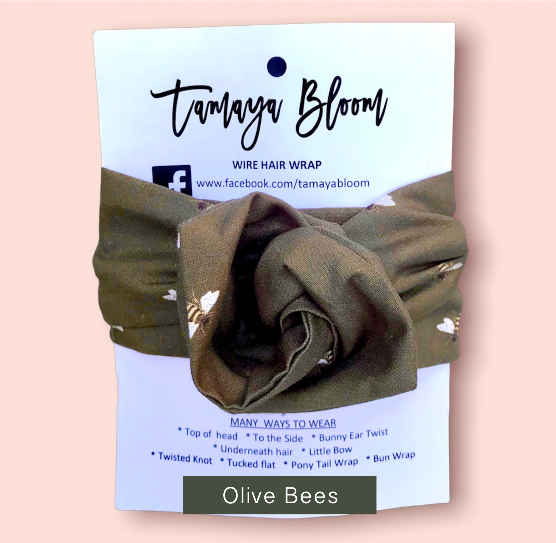 Simply wrap around your head to the desired firmness you find comfortable cross over and twist to hold in place. The ends can then be bent in to make a smaller bow, wrapped into a rose, tucked under flat or left in the bunny ear style.  You can even wrap around a ponytail or bun and finish the twist in the same way so is even more versatile.