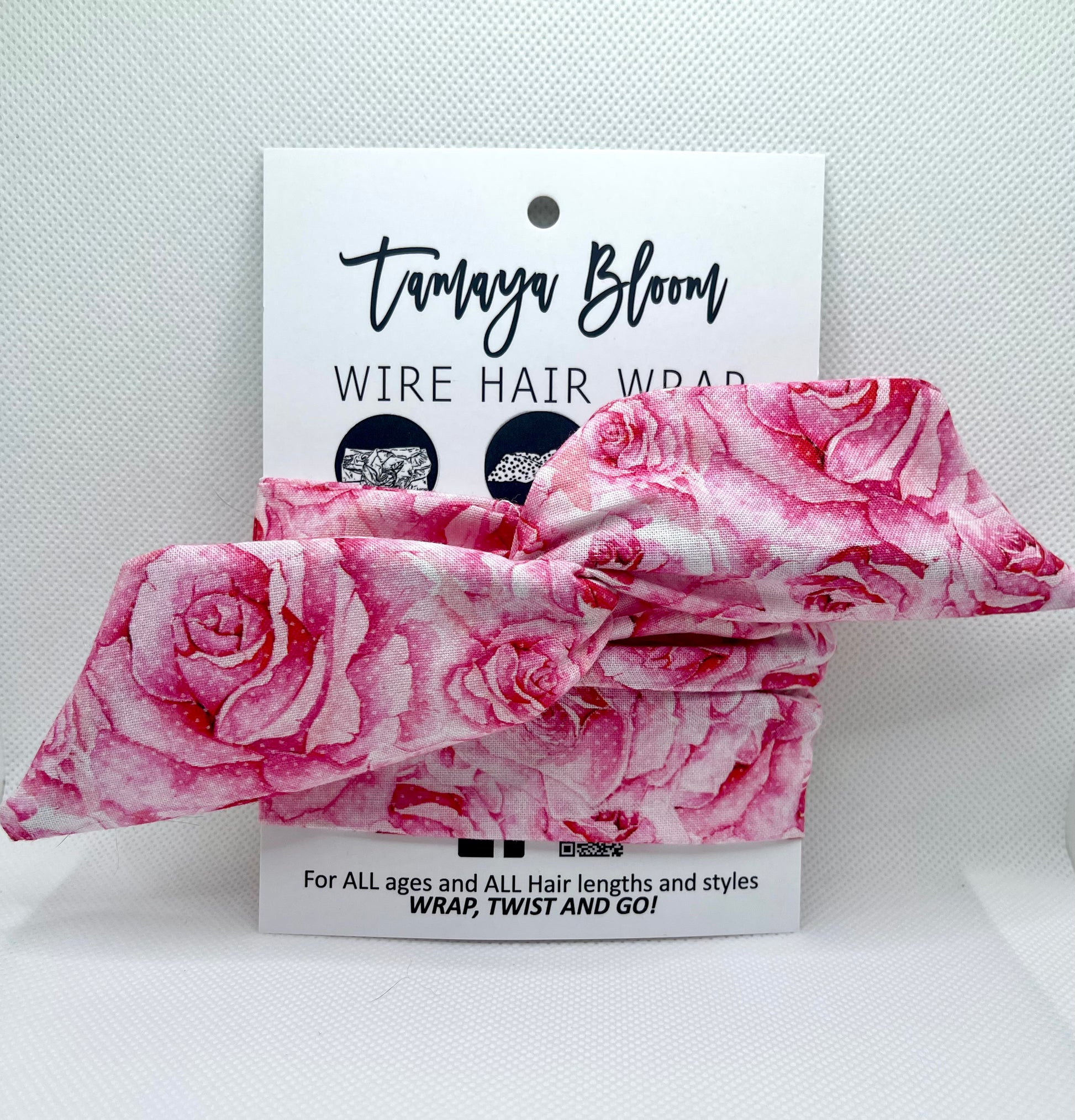 Simply wrap around your head to the desired firmness you find comfortable cross over and twist to hold in place. The ends can then be bent in to make a smaller bow, wrapped into a rose, tucked under flat or left in the bunny ear style.  You can even wrap around a ponytail or bun and finish the twist in the same way so is even more versatile.