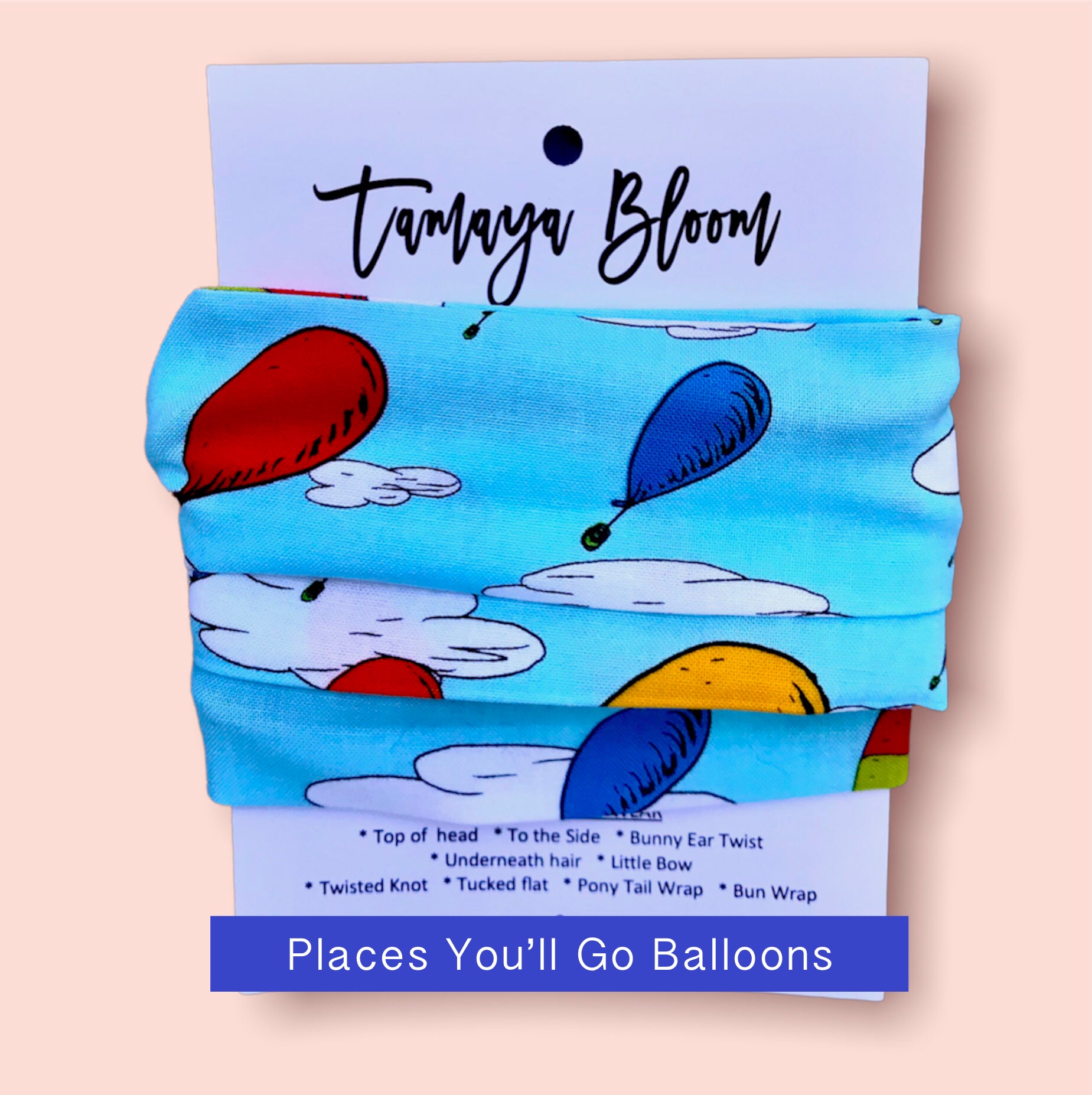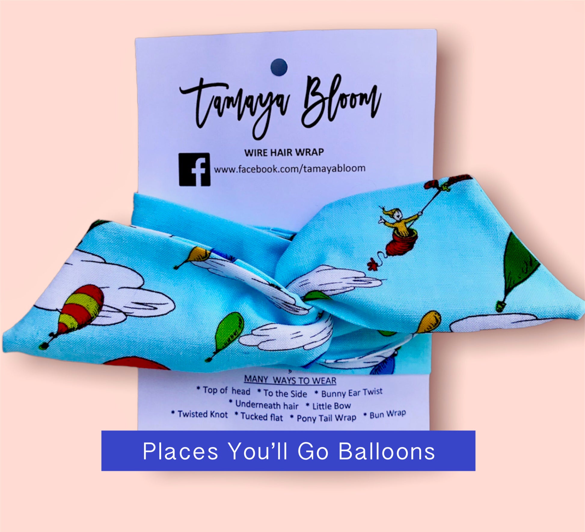 Simply wrap around your head to the desired firmness you find comfortable cross over and twist to hold in place. The ends can then be bent in to make a smaller bow, wrapped into a rose, tucked under flat or left in the bunny ear style.  You can even wrap around a ponytail or bun and finish the twist in the same way so is even more versatile.